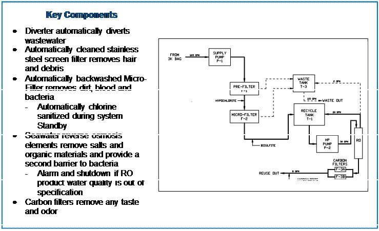 Recovers for Reuse 10,000 Gallons/Day of Potable Quality Water from 12,000 Gallons/Day of Shower and Laundry Waste Water